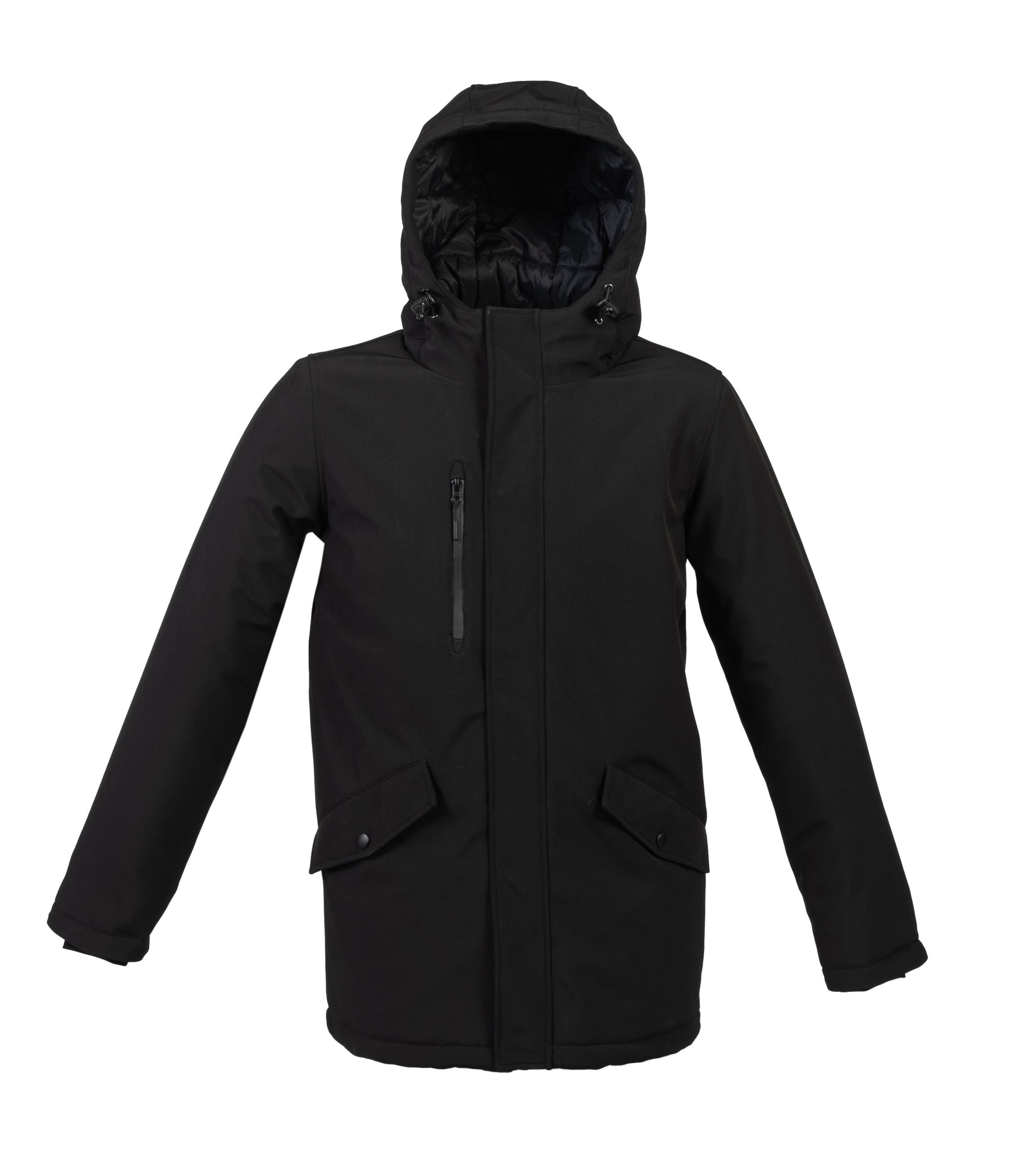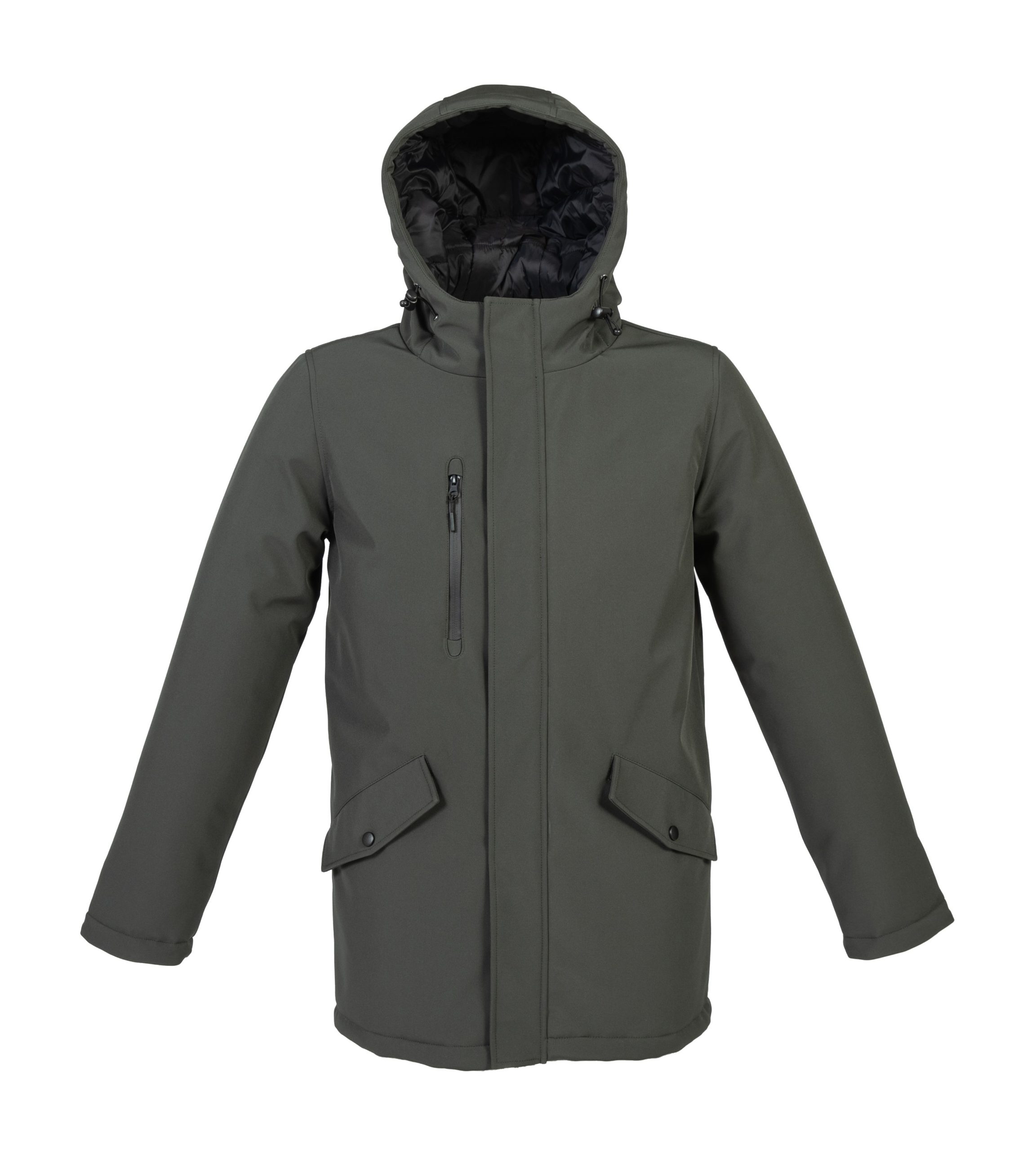 – Una tasca sul petto con cerniera antiacqua con taglio laser